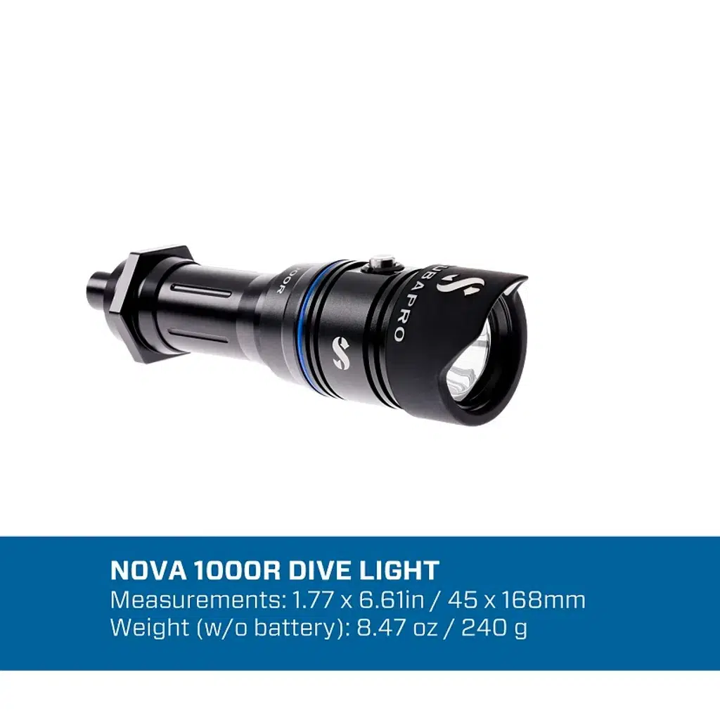 Yeni Nova 1000R, daha parlak aydınlatma için artırılmış lümen değerleri, odaklanmış 8º ışık açısı ve selefinden %40 daha uzun çalışma süresi sunan güçlü 21700 Li-ion pil kullanır. Uzun ömürlü olacak şekilde dayanıklı mat siyah alüminyumdan üretilmiş olan bu kompakt dalış lambası, ışık demetini kontrol eden uzatılmış bir lamba başlığı kaplamasına sahiptir. Gece veya gündüz dalışları için olmazsa olmaz bir ekipman olan lamba, bir düğmeye basarak kolayca açılır ve tam güç gerekmediğinde çalışma süresini uzatmak için %50 moduna sahiptir.